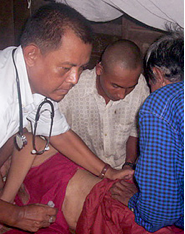 Bogale, Myanmar, 10 June 2008 — Every morning since Cyclone Nargis made landfall, Doctor Ye Lwin has been getting up at five o’clock. After morning prayers, he starts seeing patients who have travelled a long way to come to the makeshift clinic UNDP has set up at its Bogale township office.